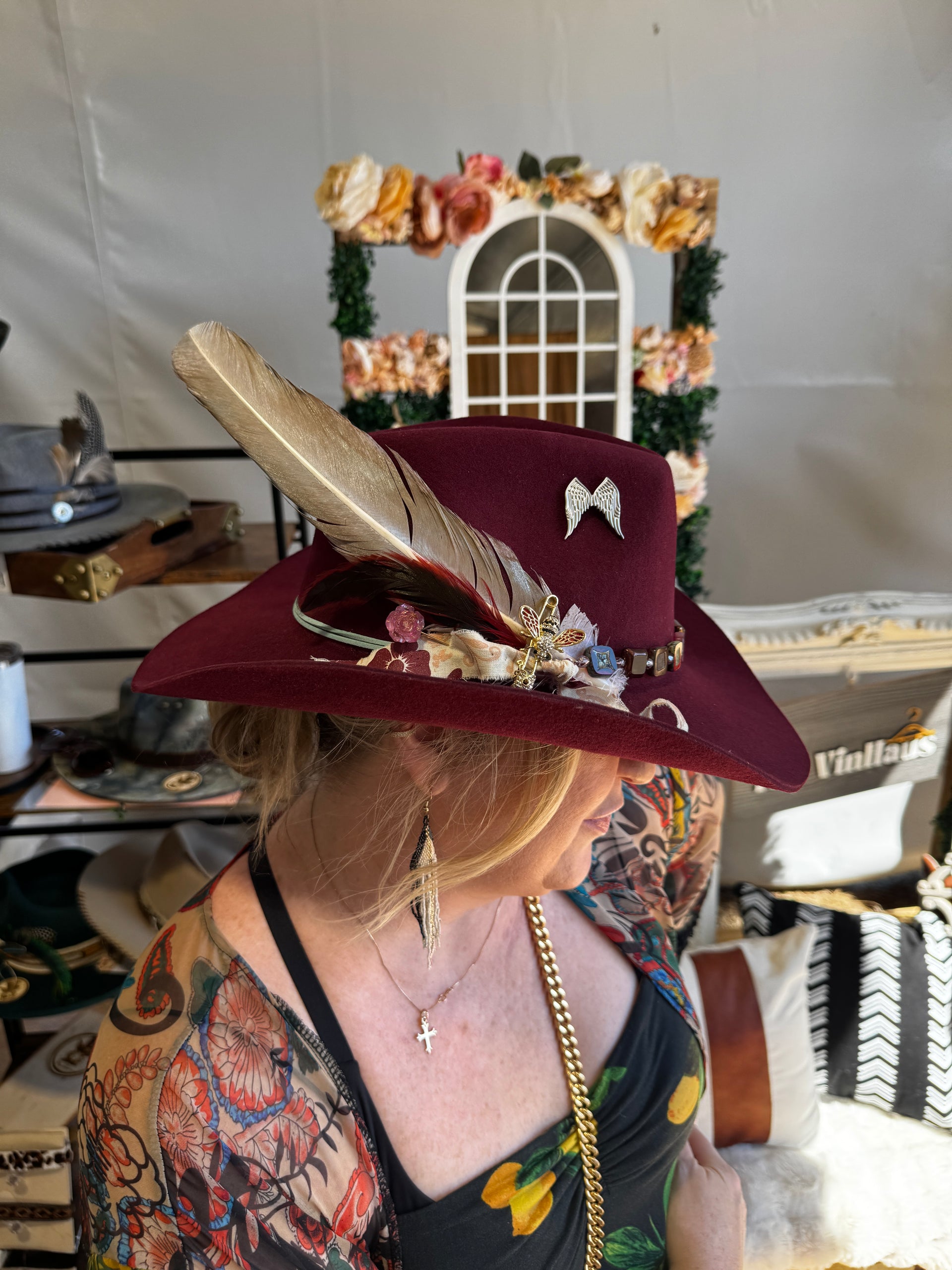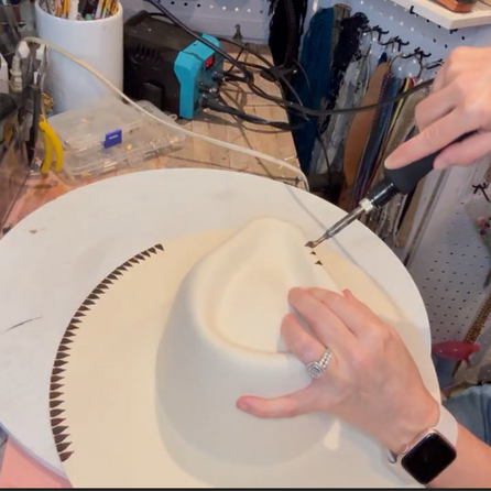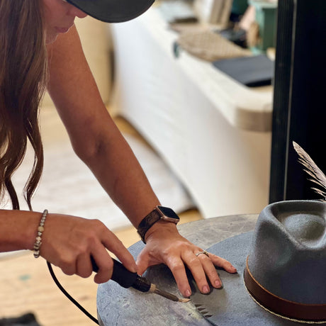 Our mobile hat bar brings the full design experience to your event. With expert designers and endless trims—leather, suede, beads, feathers, and more—we’ll customize, burn, and brand your hat into a wearable work of art.